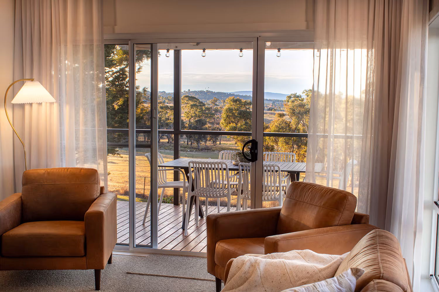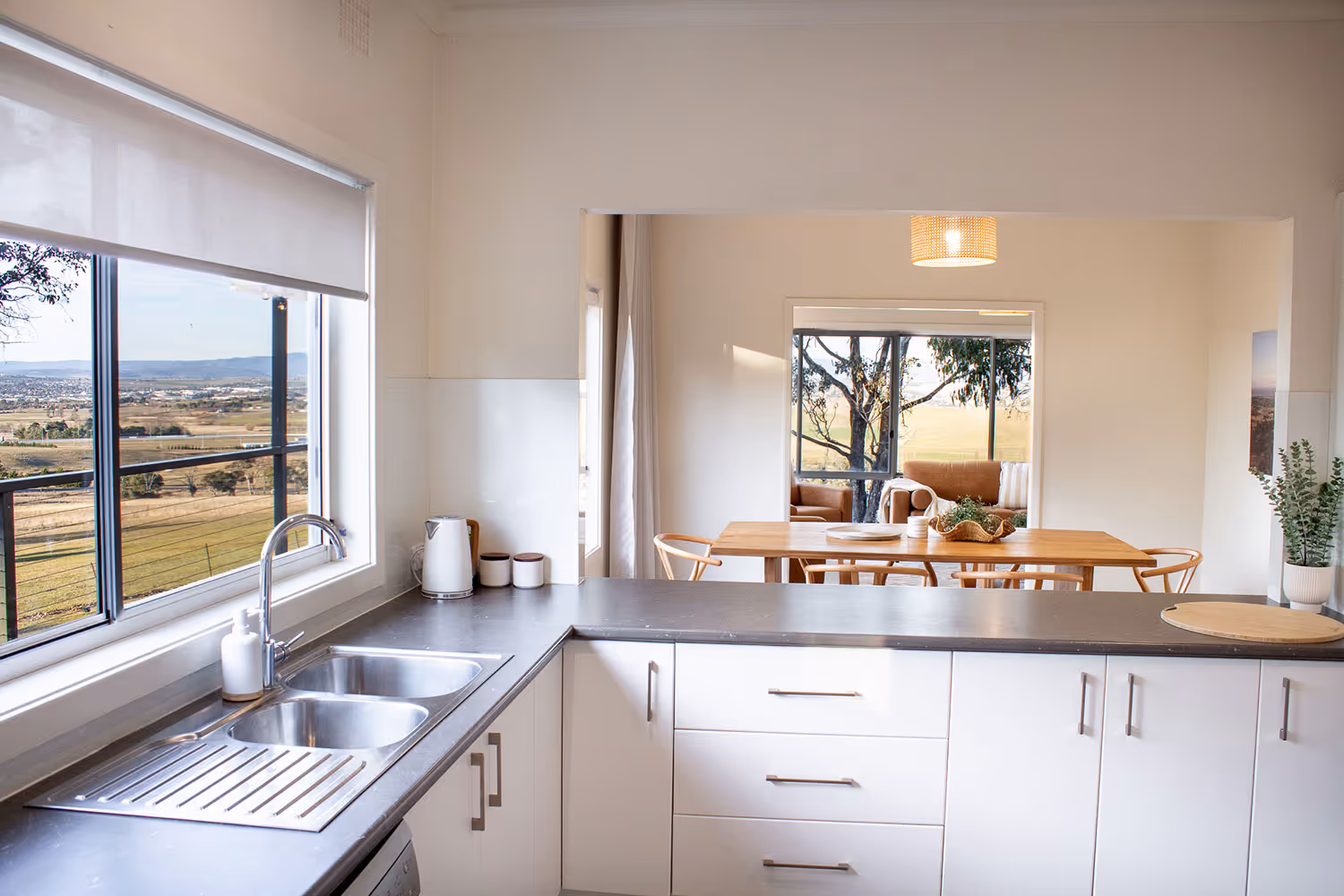 Tucked among the gum trees, our two newly renovated cabins are cosy, self-contained, and full of charm. Each has its own kitchen, dining table, ensuite, and a private balcony with views worth lingering over. Perfect for couples, families, or a quiet weekend escape, the cabins bring self-contained accommodation in Bathurst with a rustic touch of privacy. Many guests choose them for a romantic getaway in Bathurst or a boutique stay near Mount Panorama, where the bush feels close, and the world feels far away.
